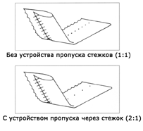 Машина оборудована отключаемым механизмом захвата через стежок. На машине используется радиусная (закругленная) игла.